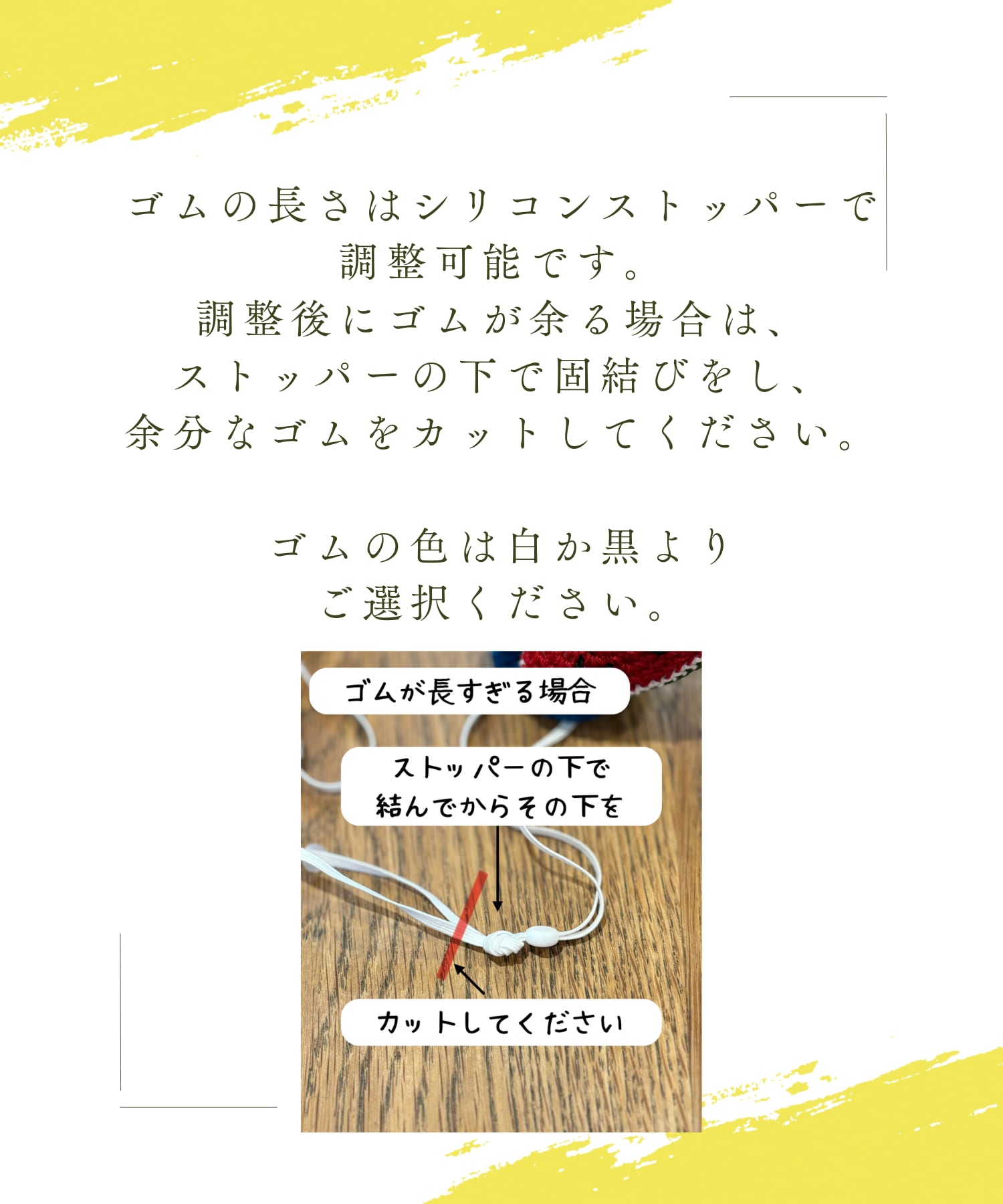 ※ゴムのカラーは白と黒からお選びいただけます。